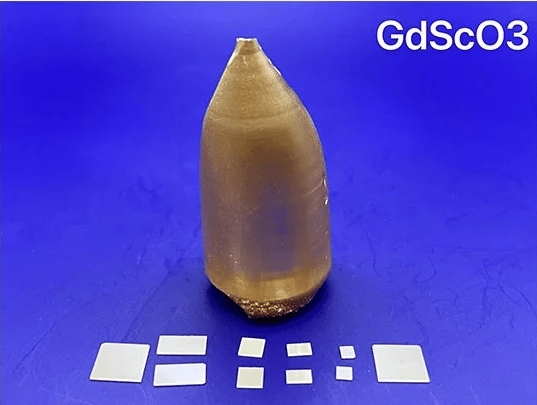 GdScO3 crystals have a good lattice match with perovskite superconductors and are excellent ferroelectric thin film substrate materials.